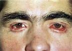 Симптомы: отеки век, отек конъюнктивы, гиперемия слизистой оболочки, светобоязнь, слезотечение, гиперемия склер, слизисто-гнойные выделения из глаз, покраснение краев век, слипание век, гнойные корочки по краю век, выпадение ресниц, изъязвление краев век, серовато-белые чешуйки по краю века, жжение в глазах, жжение в области век