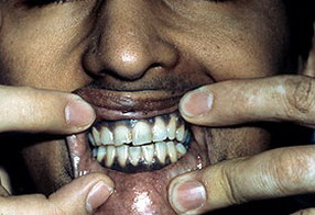 Симптомы: потемнение кожи (гиперпигментация), гиперпигментация слизистых оболочек, мышечная слабость, утомляемость, снижение массы тела, снижение аппетита, гипотония, головокружение, тошнота и рвота, диарея, депрессия, психоз, гиперчувствительность