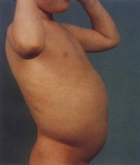 Симптомы: запор, лягушачий живот, метеоризм, гипотрофия, каловые камни, а также возможно проявление таких симптомов как снижение аппетита, рвота, анемия, деформация грудной клетки