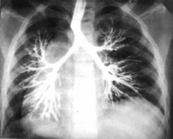 Лечение. Радикальным методом лечения заболевания является оперативное вмешательство. Консервативная терапия проводится у неоперабельных больных, у пациентов с малым объемом поражения бронхов и при подготовке к операции. Лечение включает в себя: бронходилататоры, отхаркивающие средства и антибиотики, ингаляции веществ, разжижающих мокроту (бронхолитиков), дыхательную гимнастику, массаж грудной клетки, курсы санации бронхов с помощью введения в них гибкого эндоскопа.