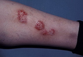 У детей на коже туловища и на разгибательных поверхностях конечностей появляется сыпь, состоящая из небольших волдырей, в центре которых обнаруживается желтоватое пятно. От расчесов волдырь разрывается и образуется кровянистая корочка.