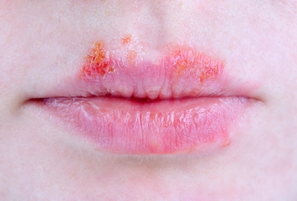 Симптомы: афты и язвы на слизистой полости рта и губ, высокая температура (лихорадка), боль и жжение во рту во время еды, а также возможно проявление таких симптомов как слюнотечение, лихорадка, плохой аппетит, отек десен, боль в горле при глотании, волдыри и язвы во рту