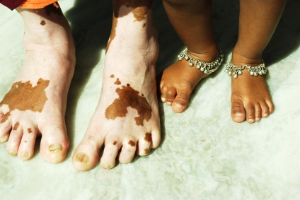 Витилиго - потеря пигментации на отдельных участках кожи из-за нарушения в клетках меланоцитах. Приобретённое, хроничеки текущее заболевание кожи с потерей естественной кожной окраски, связанное с заболеваниями щитовидной железы, надпочечников, гипофиза, нервной системы, а также психическими травмами, дефектами иммунной системы, обострениями аутоиммунных заболеваний, хронических заболеваний внутренних органов (особенно печени, кишечника), работой на вредных производствах химической промышленности. Роль в развитии витилиго отводят недостаточному поступлению или усвоению меди и цинка, участвующих в образовании меланина - пигмента придающего окраску коже. Гельминтозы (лямблиоз, описторхоз) тоже могут быть факторами развития витилиго.