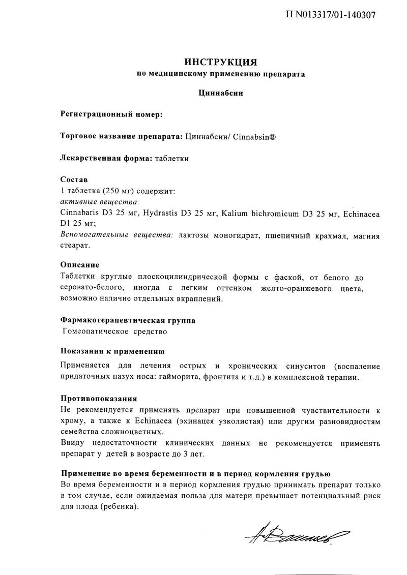 Циннабсин (Cinnabsin), описание лекарства, фармакологические действия, действующие вещества и формы выпуска