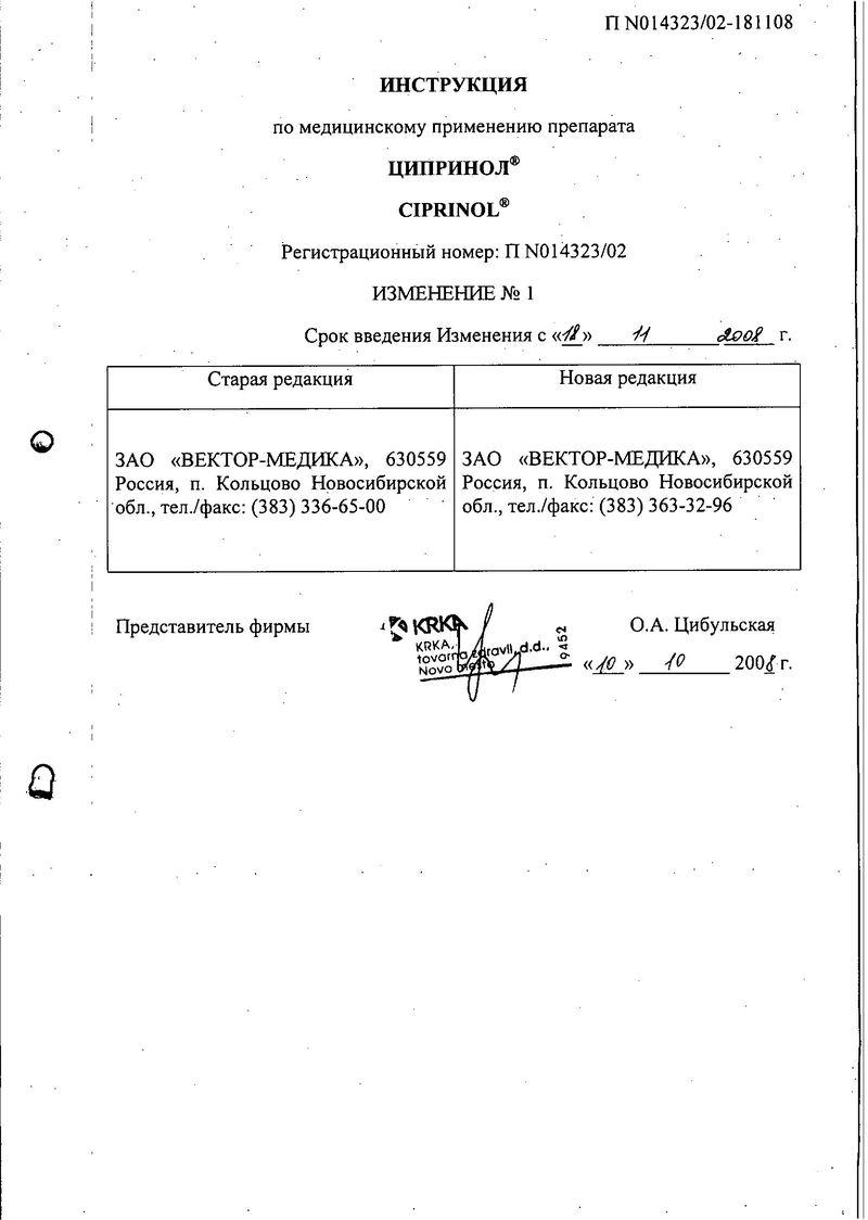 Ципринол® (Ciprinol®), описание лекарства, фармакологические действия, действующие вещества и формы выпуска