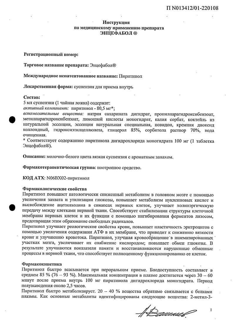 Описание лекарственного средства Энцефабол® не предназначено для назначения лечения без участия врача.