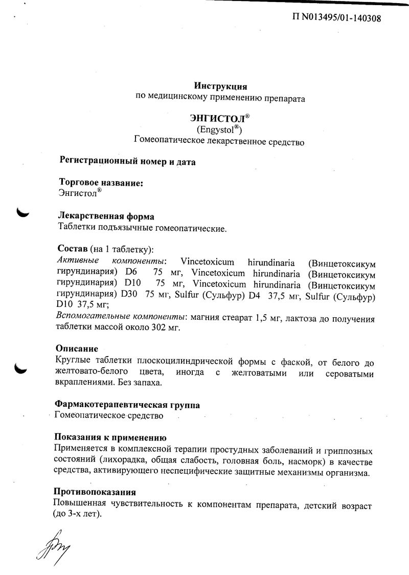 Описание лекарственного средства Энгистол® не предназначено для назначения лечения без участия врача.
