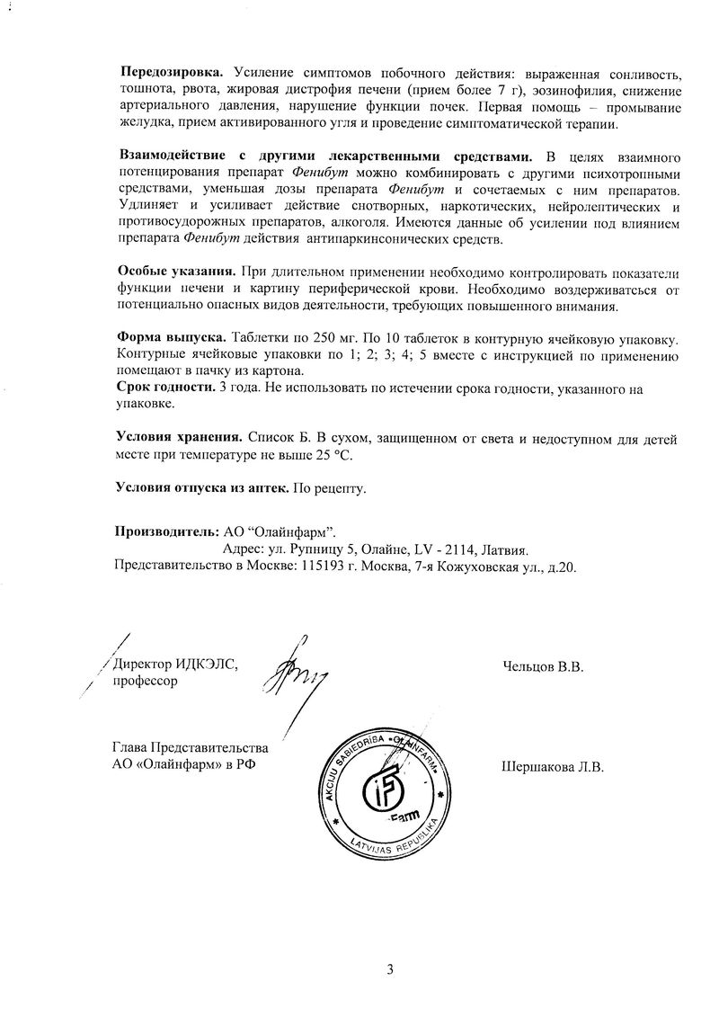 Описание лекарственного средства Фенибут не предназначено для назначения лечения без участия врача.