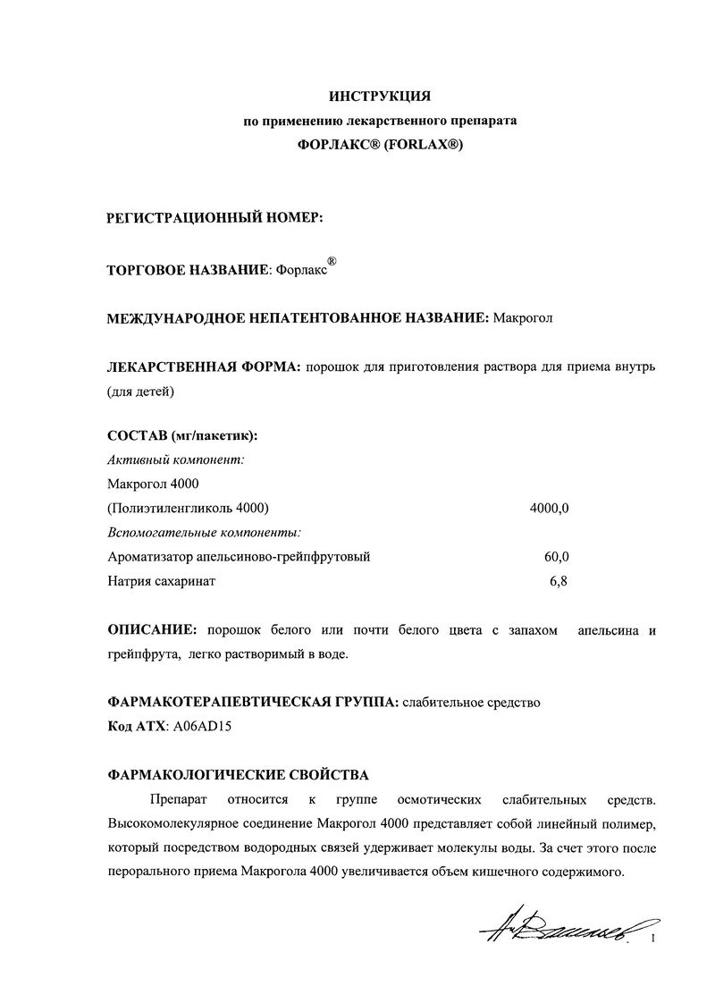 Форлакс® (Forlax®), описание лекарства, фармакологические действия, действующие вещества и формы выпуска