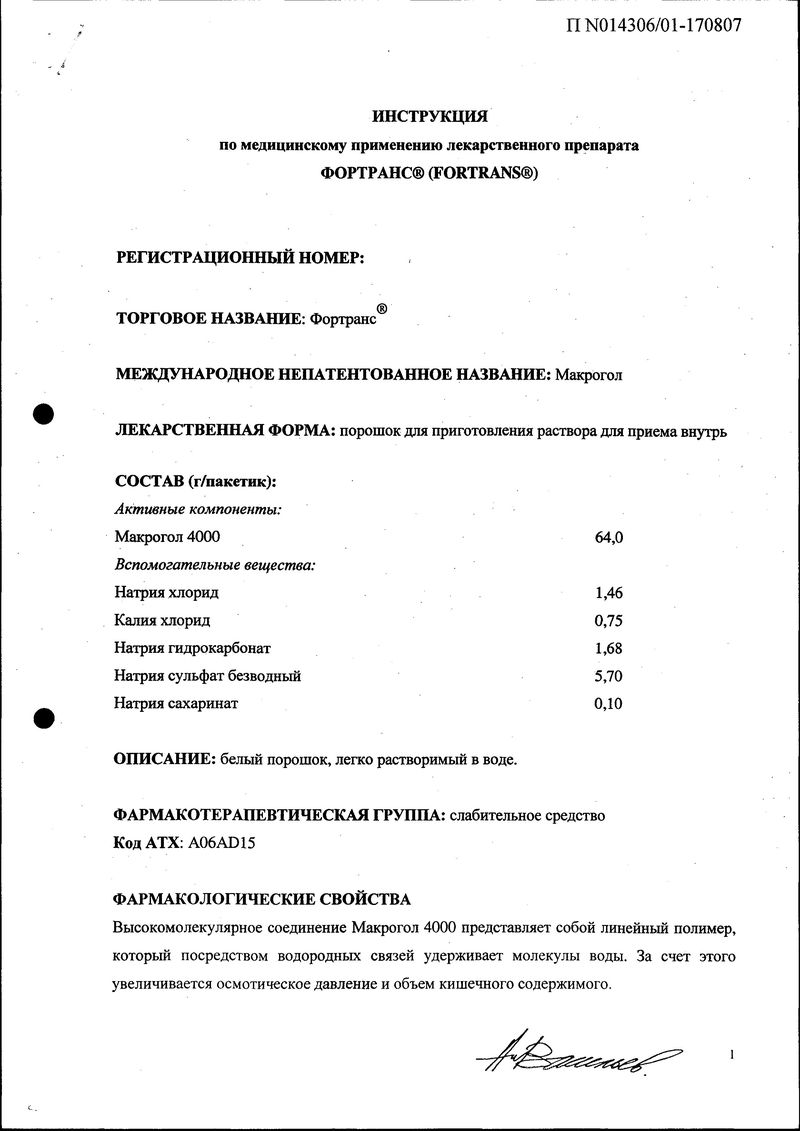 Описание лекарственного средства Фортранс® не предназначено для назначения лечения без участия врача.