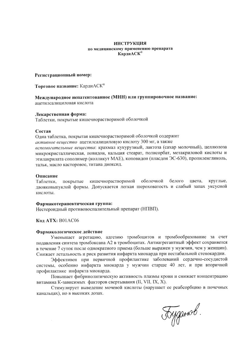 Описание лекарственного средства КардиАСК® не предназначено для назначения лечения без участия врача.