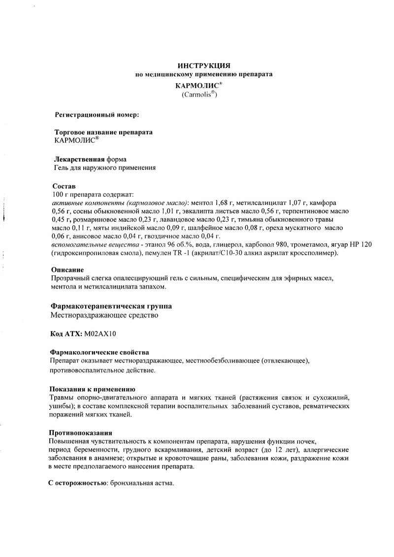 Описание лекарственного средства Кармолис® не предназначено для назначения лечения без участия врача.