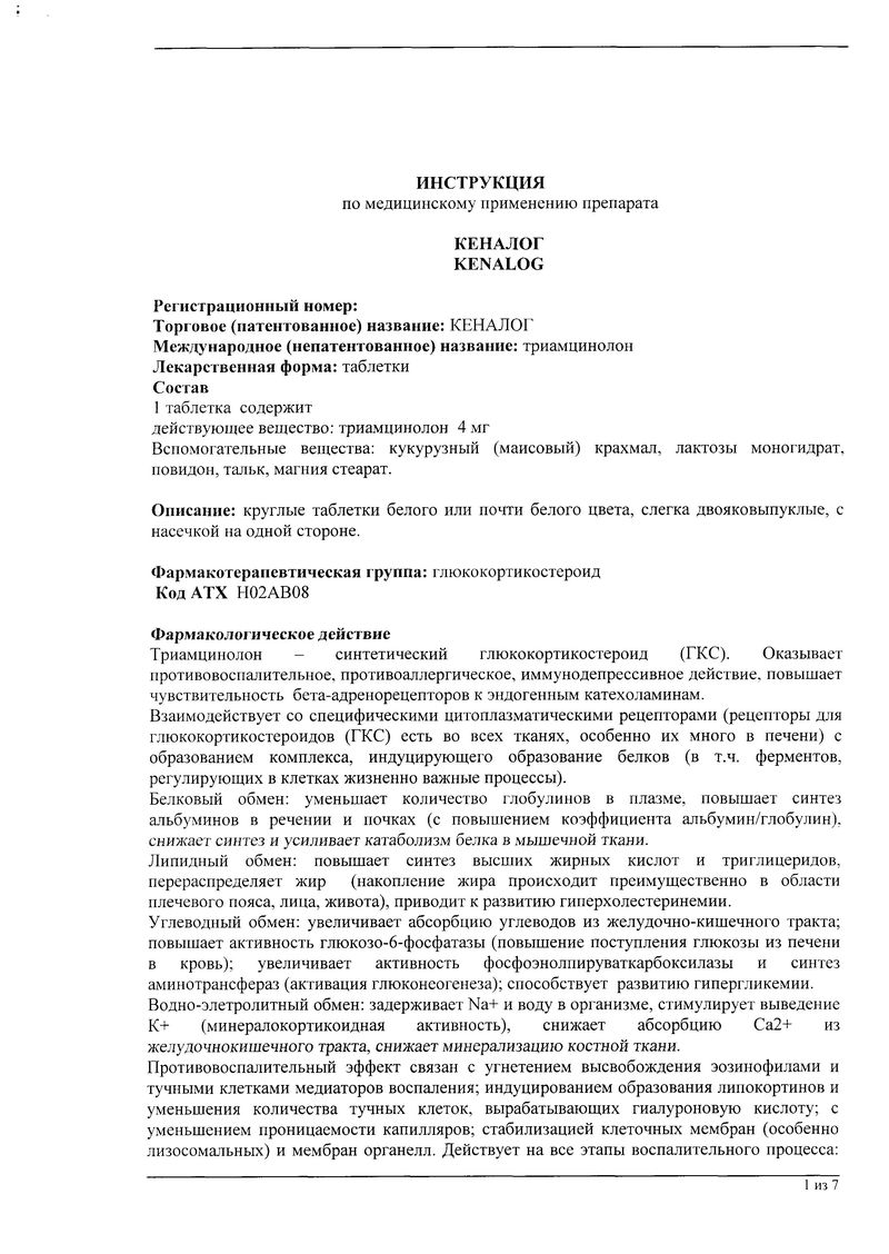 Описание лекарственного средства Кеналог® не предназначено для назначения лечения без участия врача.