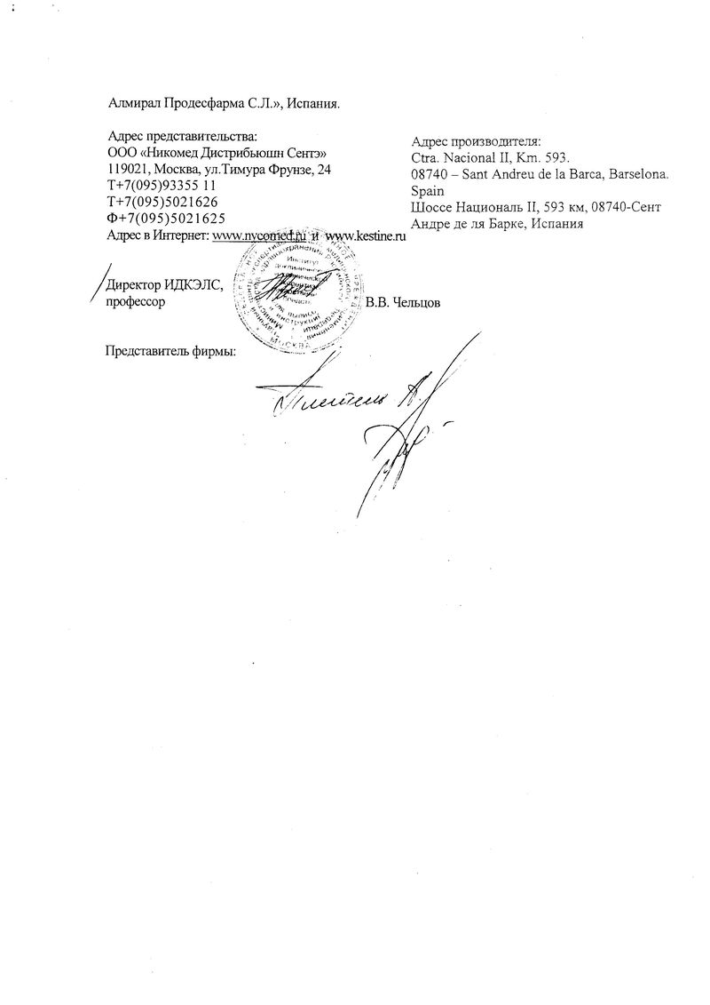 Описание лекарственного средства Кестин® не предназначено для назначения лечения без участия врача.