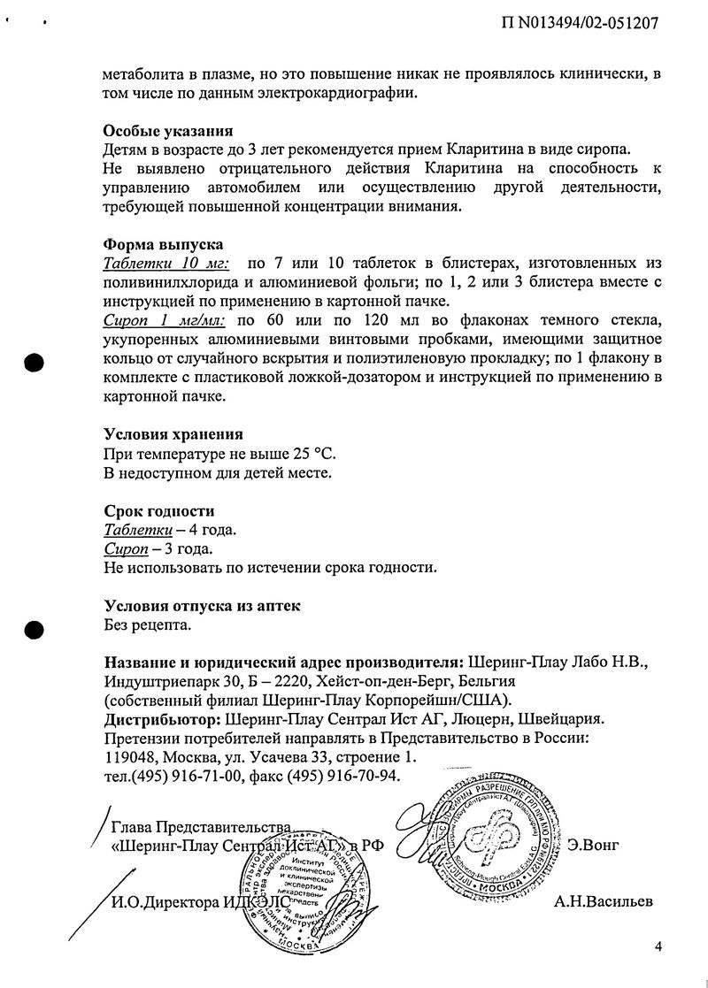 Описание лекарственного средства Кларитин® не предназначено для назначения лечения без участия врача.