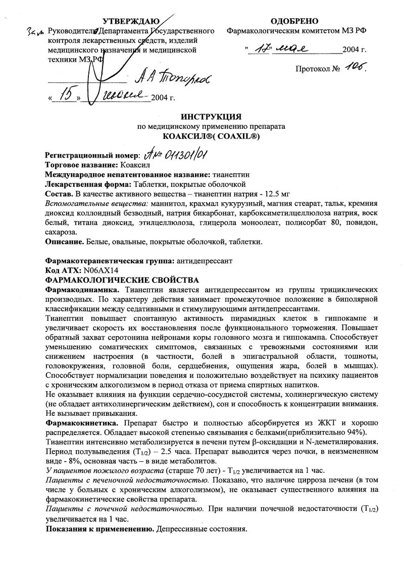 Коаксил (Coaxil®), описание лекарства, фармакологические действия, действующие вещества и формы выпуска