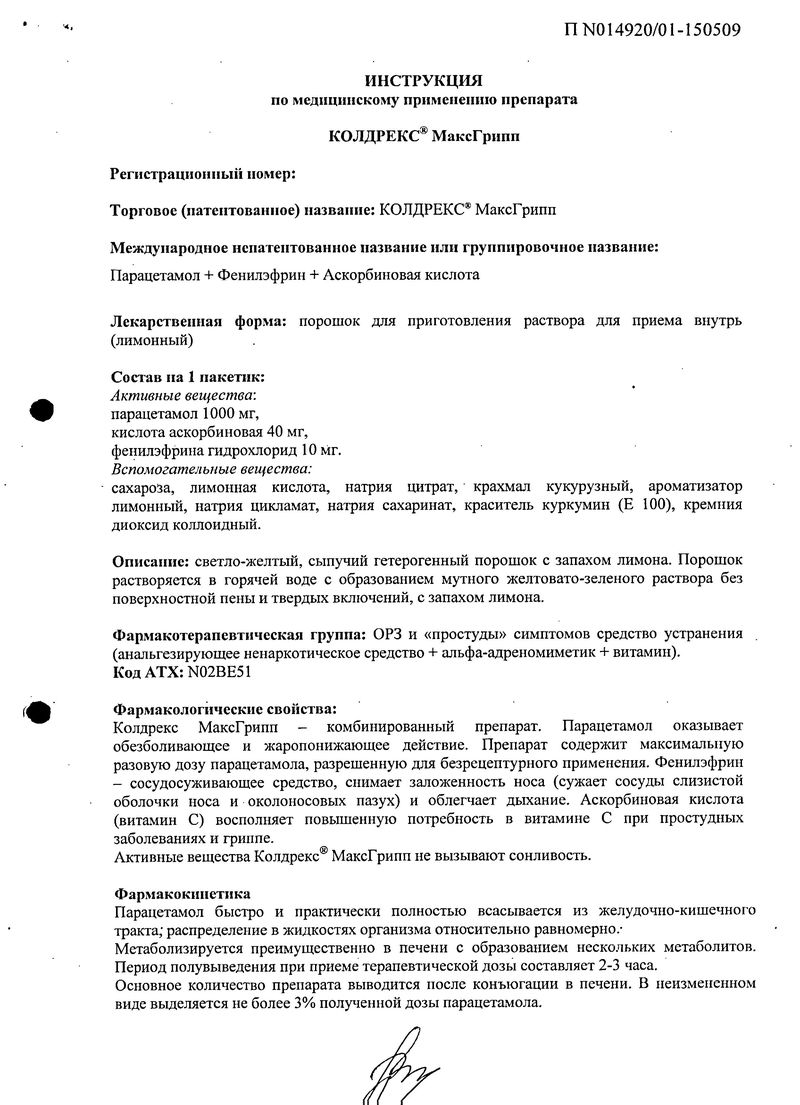 Колдрекс МаксГрипп со вкусом лимона, описание лекарства, фармакологические действия, действующие вещества и формы выпуска