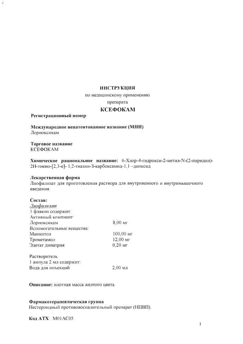 Описание лекарственного средства Ксефокам® не предназначено для назначения лечения без участия врача.