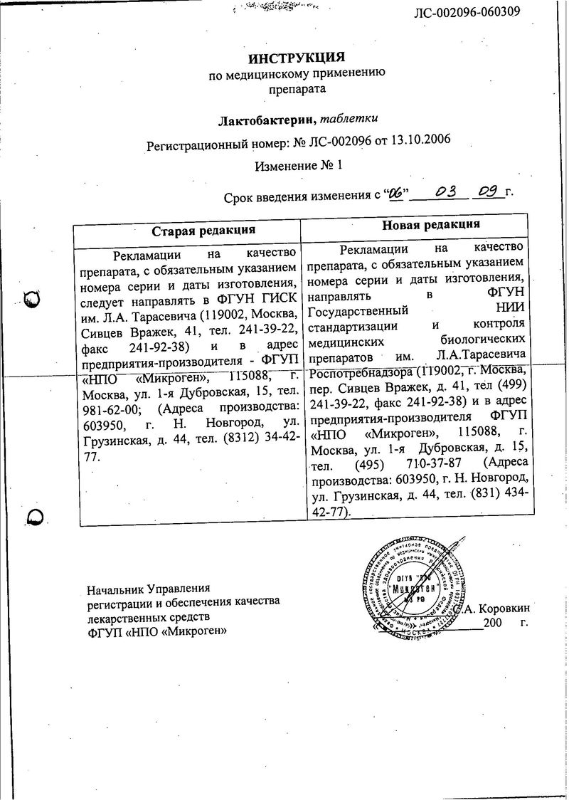 Описание лекарственного средства Лактобактерин не предназначено для назначения лечения без участия врача.