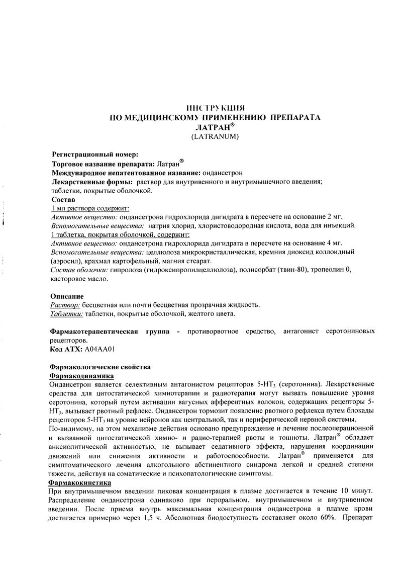 Латран® (Latranum), описание лекарства, фармакологические действия, действующие вещества и формы выпуска