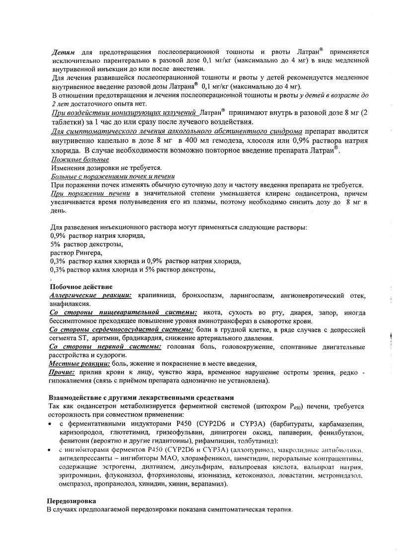 Описание лекарственного средства Латран® не предназначено для назначения лечения без участия врача.