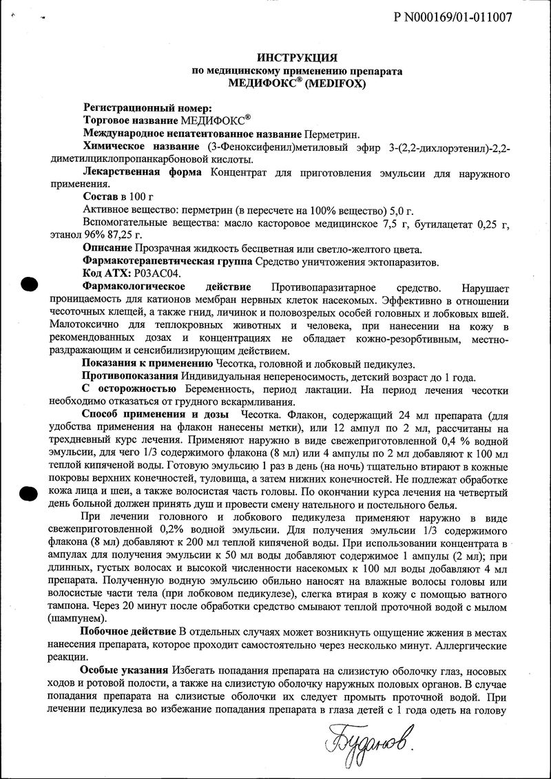 Описание лекарственного средства Медифокс не предназначено для назначения лечения без участия врача.