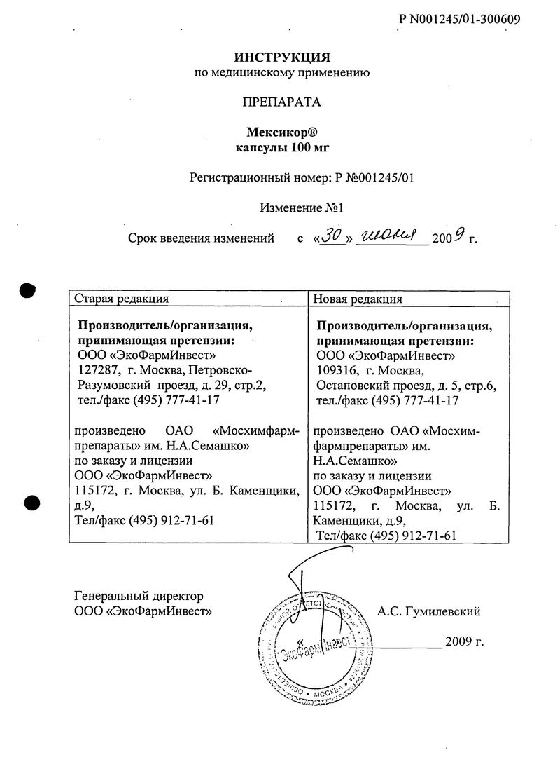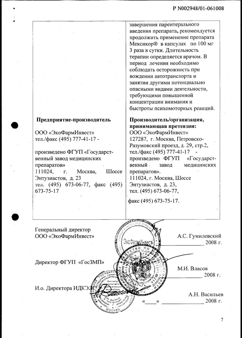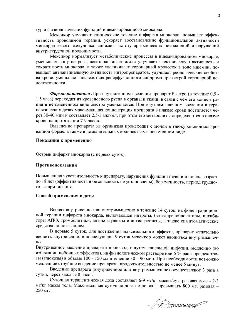 Описание лекарственного средства Мексикор® не предназначено для назначения лечения без участия врача.