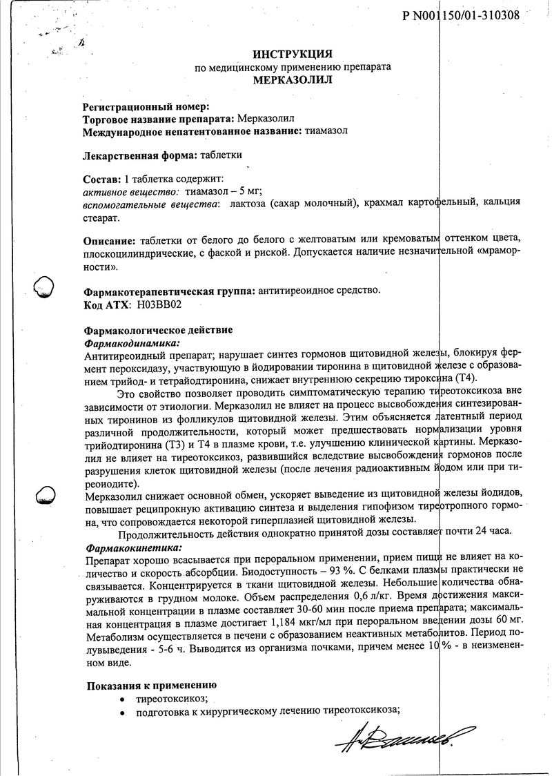 Описание лекарственного средства Мерказолил не предназначено для назначения лечения без участия врача.