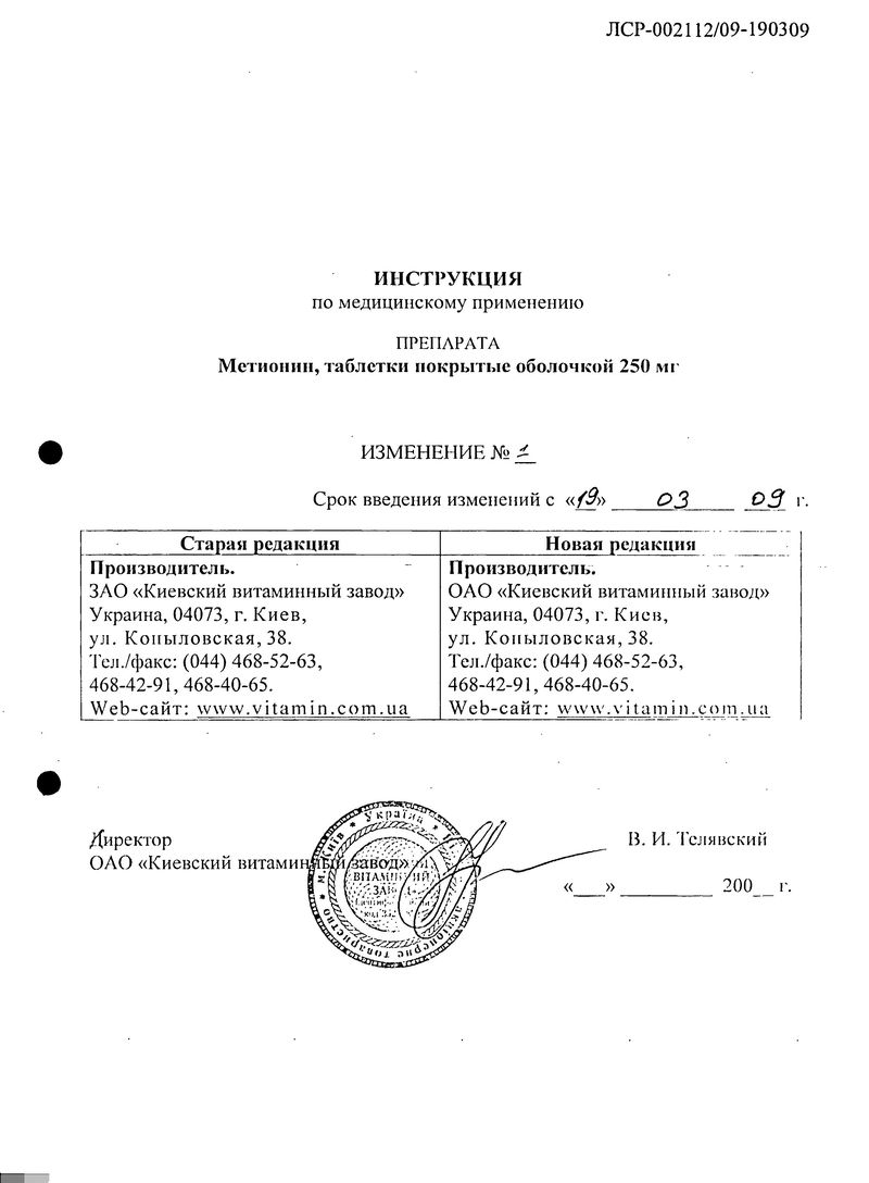 - Действующее вещество: Метионин