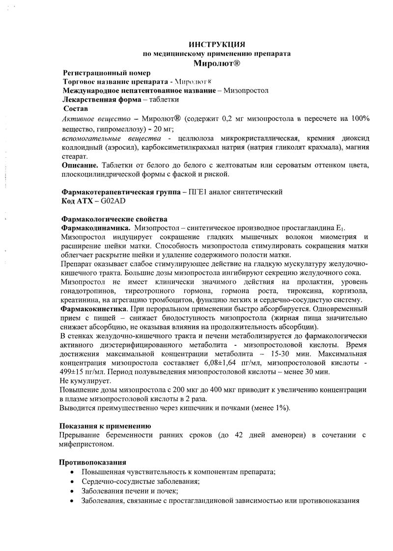 Миролют® (Mirolut), описание лекарства, фармакологические действия, действующие вещества и формы выпуска