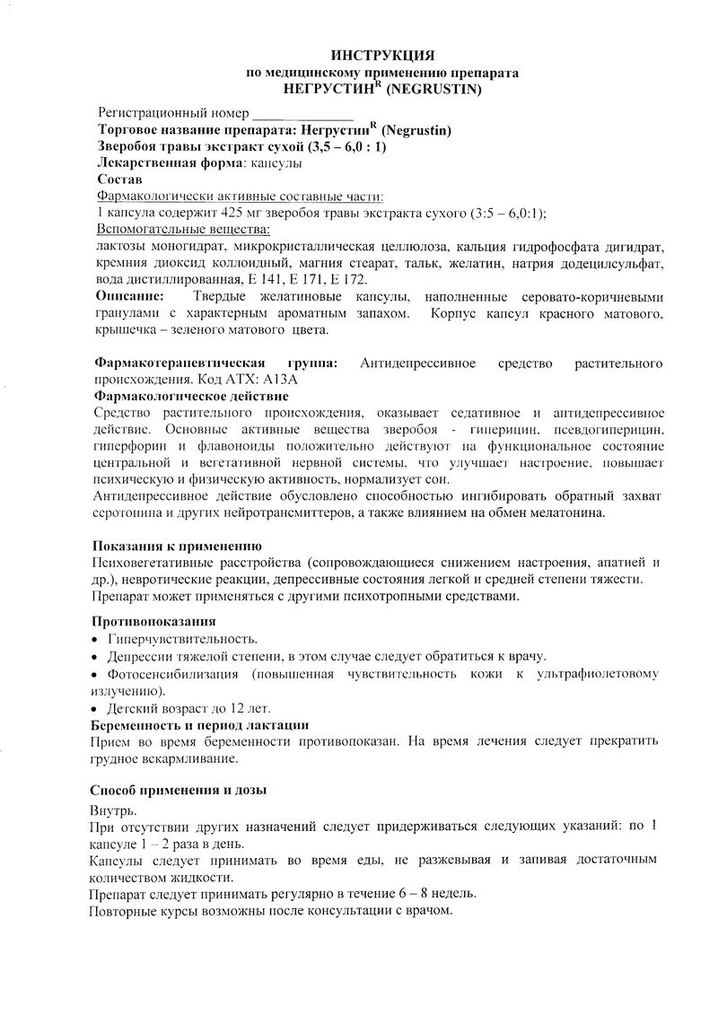 Описание лекарственного средства Негрустин® не предназначено для назначения лечения без участия врача.