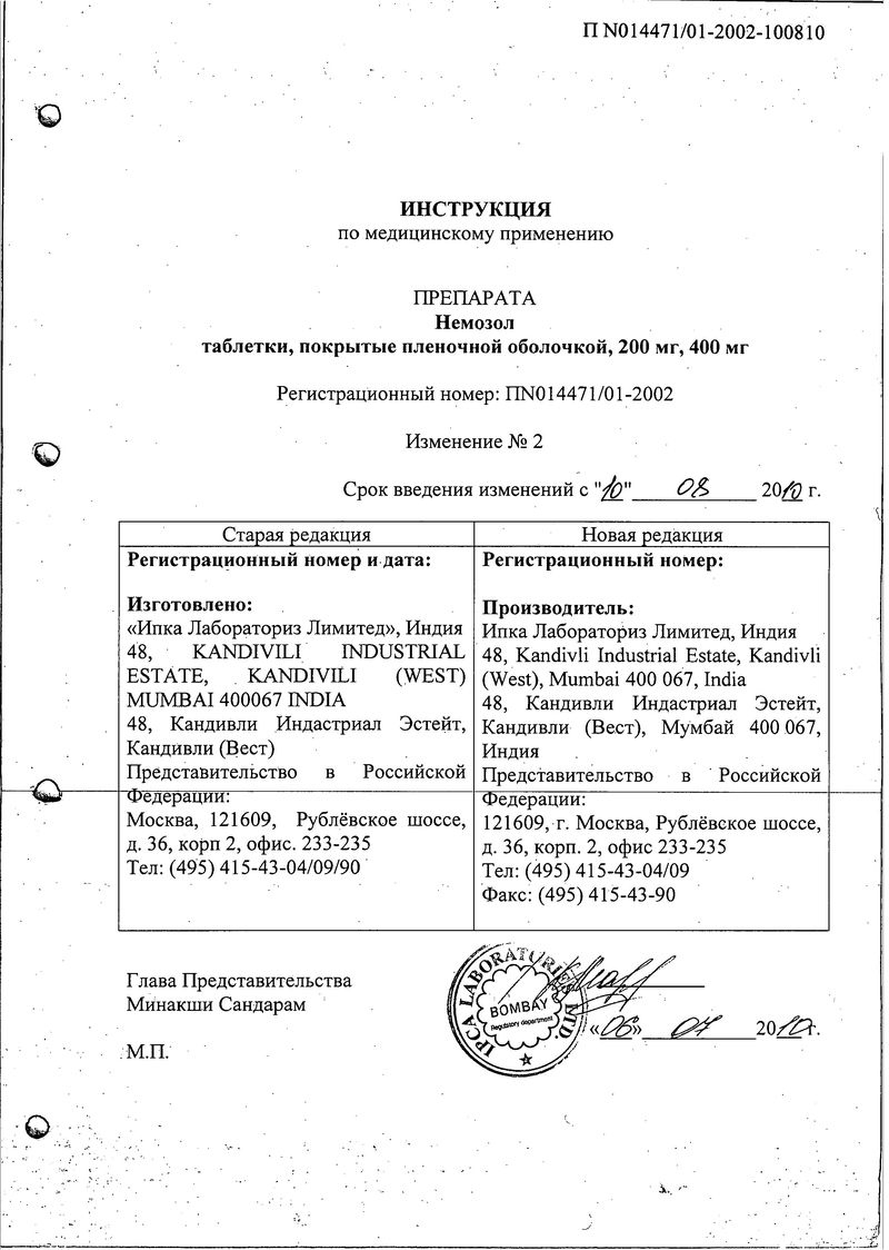 Описание лекарственного средства Немозол не предназначено для назначения лечения без участия врача.