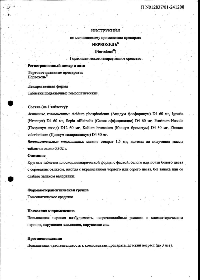Описание лекарственного средства Нервохель® не предназначено для назначения лечения без участия врача.
