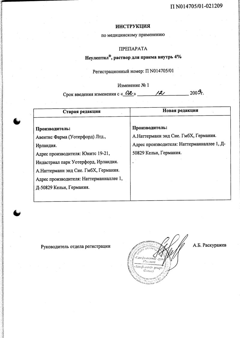 Описание лекарственного средства Неулептил® не предназначено для назначения лечения без участия врача.