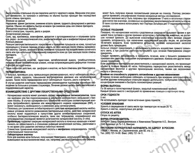 Описание лекарственного средства Невиграмон® не предназначено для назначения лечения без участия врача.