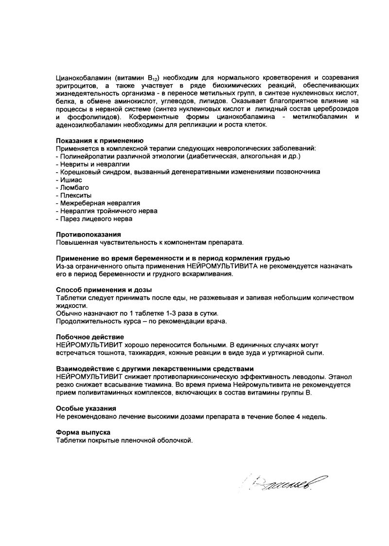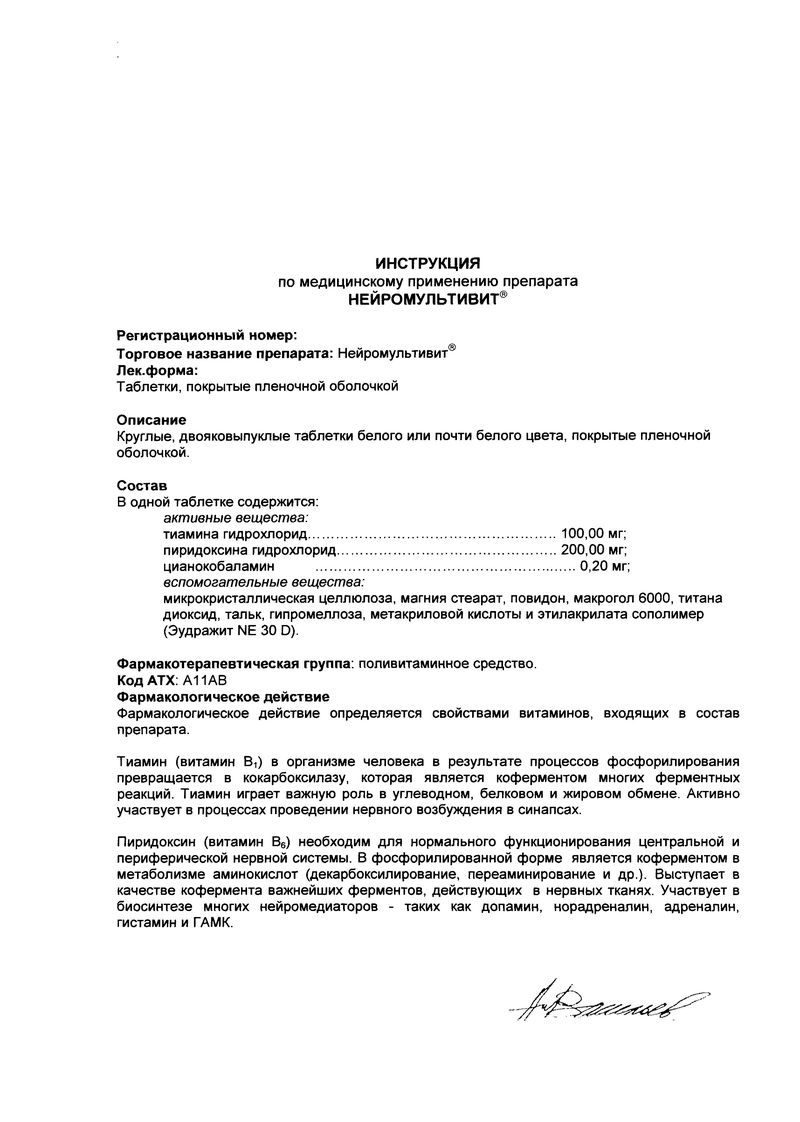 Описание лекарственного средства Нейромультивит® не предназначено для назначения лечения без участия врача.