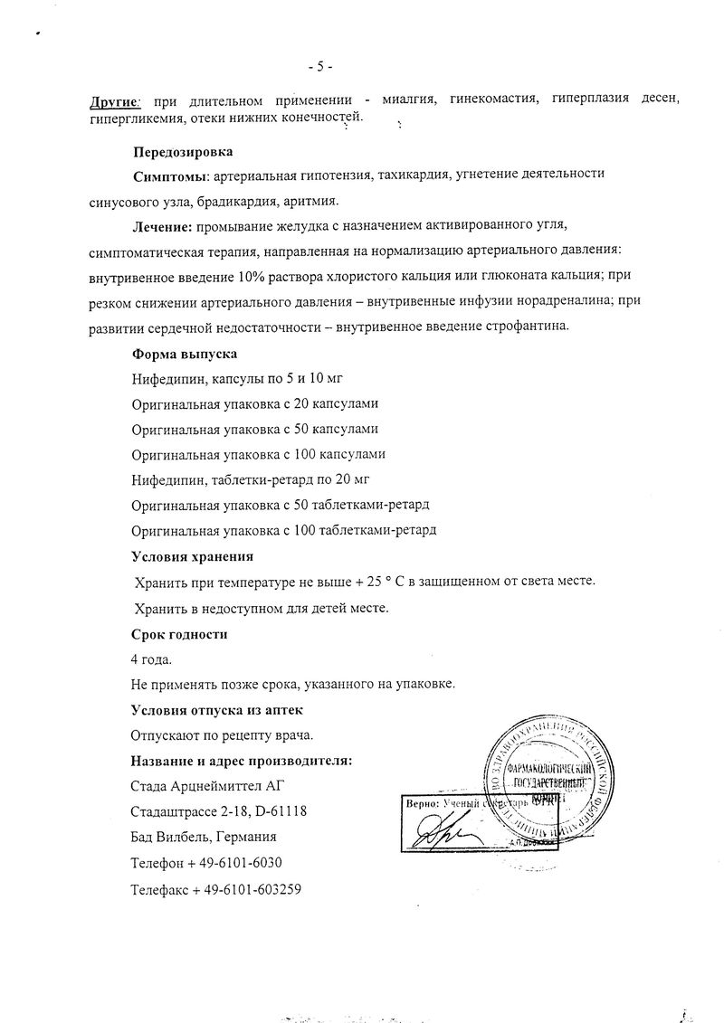 - Действующее вещество: Нифедипин