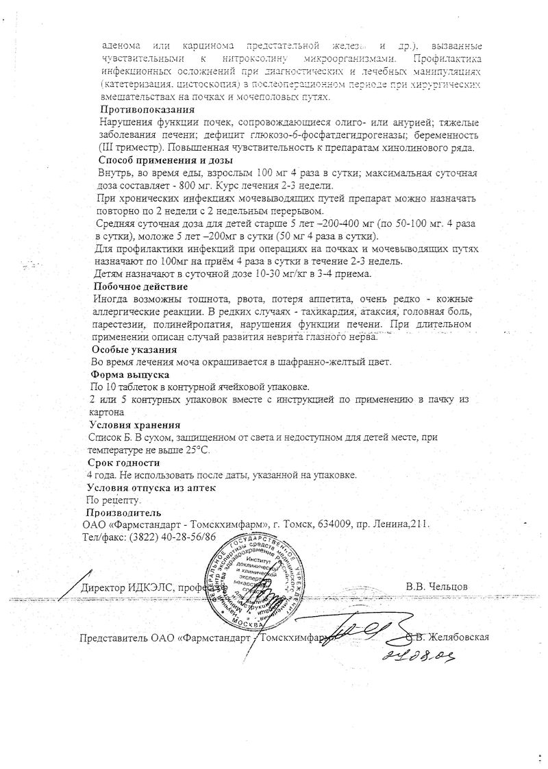 Описание лекарственного средства Нитроксолин не предназначено для назначения лечения без участия врача.