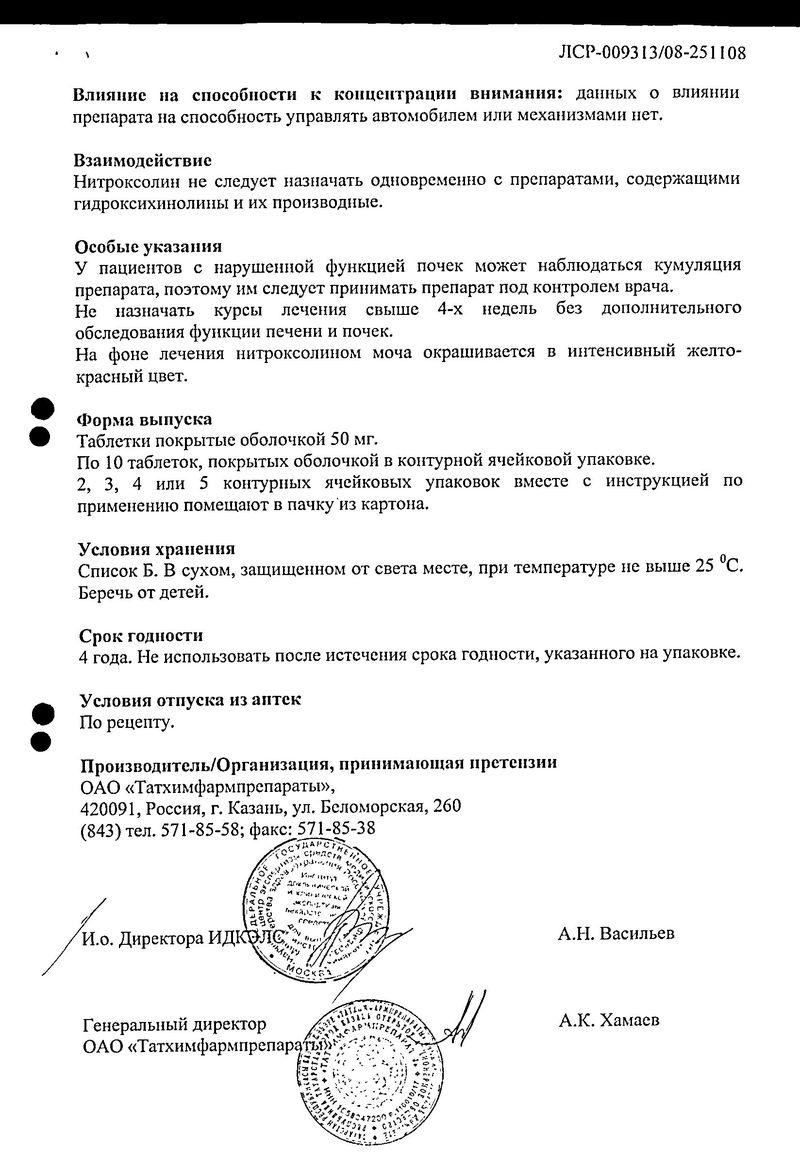 Нитроксолин (Nitroxoline), описание лекарства, фармакологические действия, действующие вещества и формы выпуска