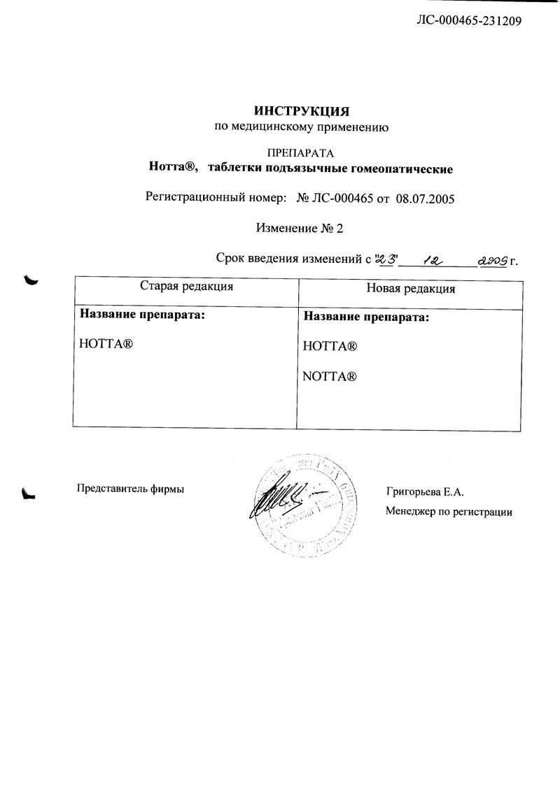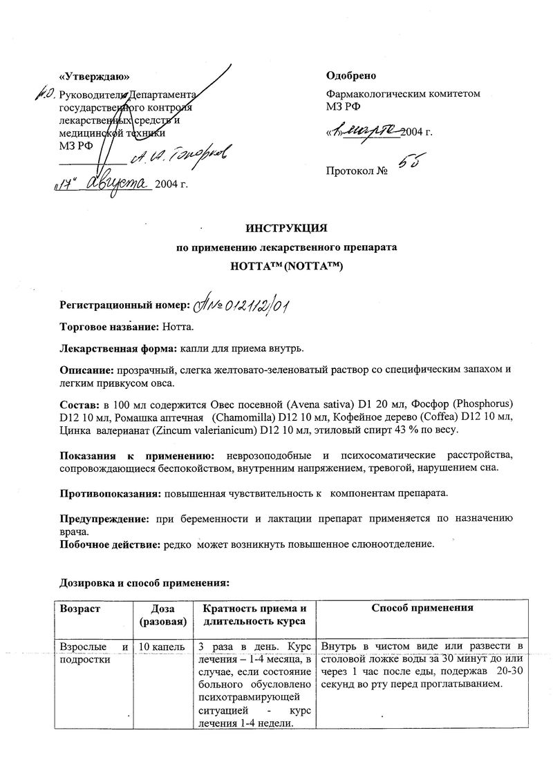 Описание лекарственного средства Нотта® не предназначено для назначения лечения без участия врача.