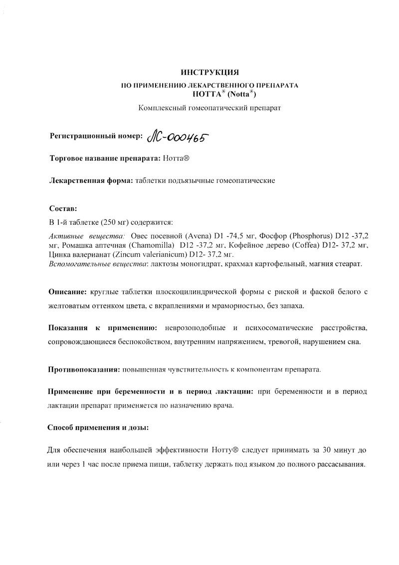 Нотта® (Notta®), описание лекарства, фармакологические действия, действующие вещества и формы выпуска