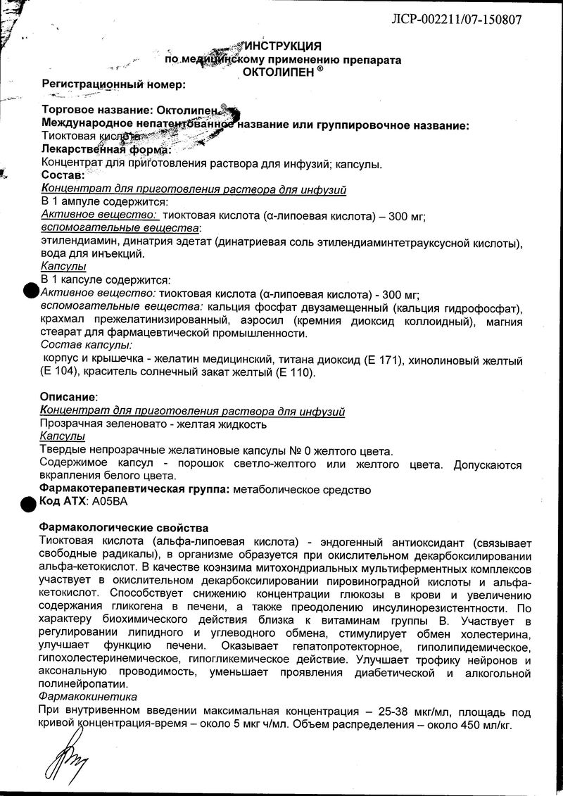 Октолипен® (Octolipen®), описание лекарства, фармакологические действия, действующие вещества и формы выпуска