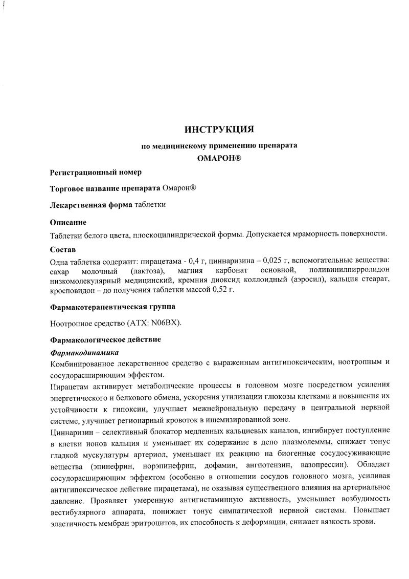 Описание лекарственного средства Омарон® не предназначено для назначения лечения без участия врача.