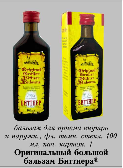 Описание лекарственного средства Оригинальный большой бальзам Биттнера® не предназначено для назначения лечения без участия врача.