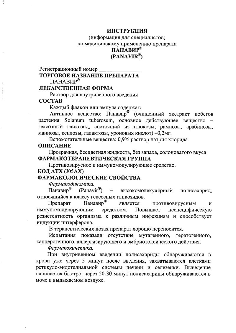 Панавир® (Panavir®), описание лекарства, фармакологические действия, действующие вещества и формы выпуска