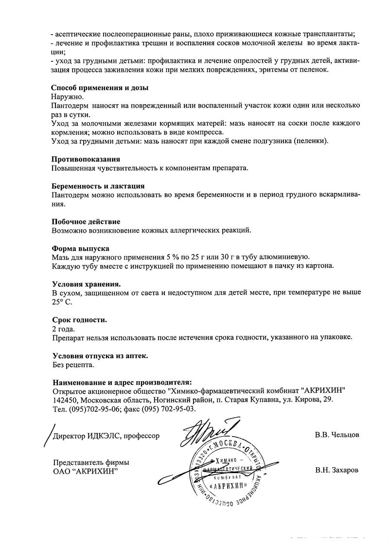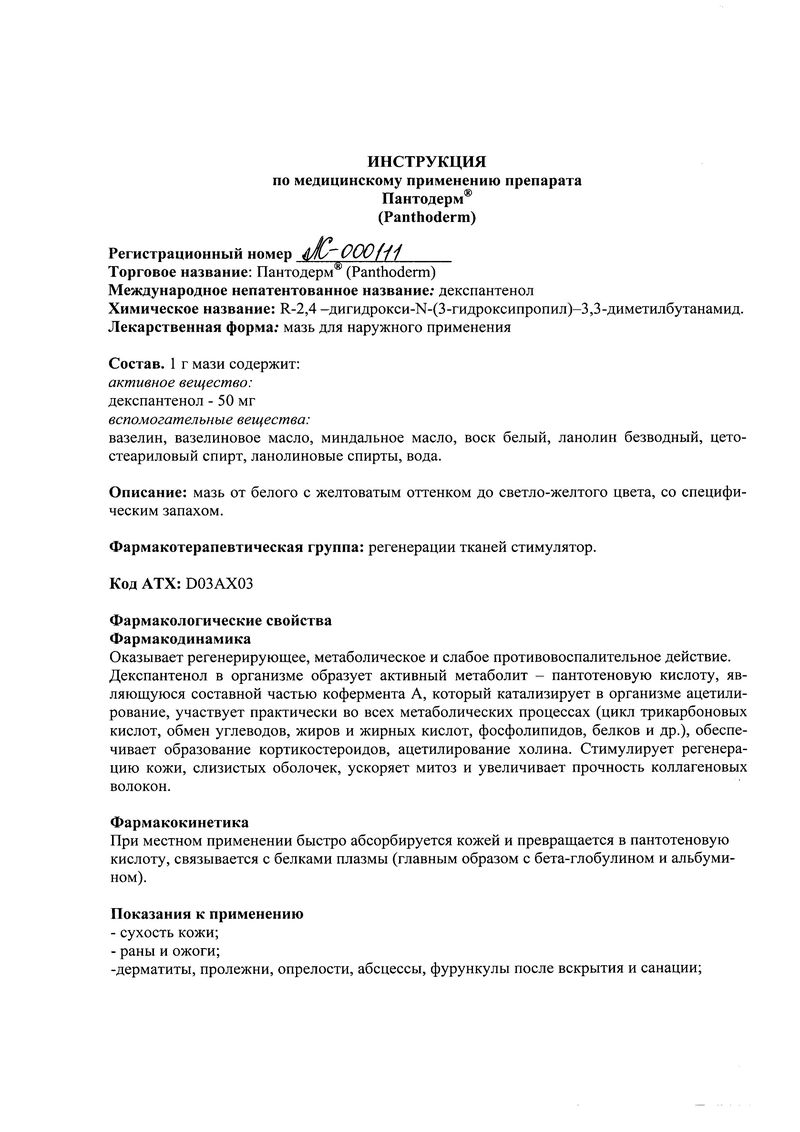 Описание лекарственного средства Пантодерм® не предназначено для назначения лечения без участия врача.
