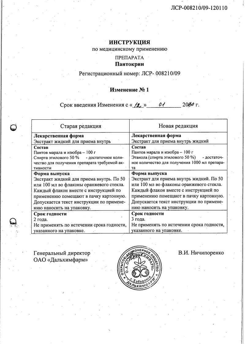 Описание лекарственного средства Пантокрин не предназначено для назначения лечения без участия врача.