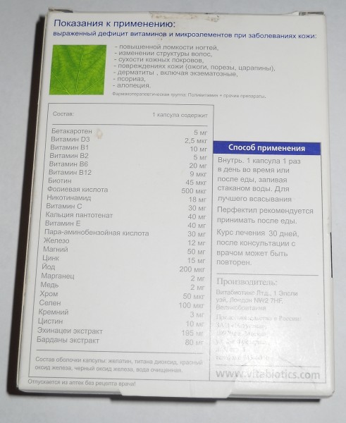 Перфектил® (Perfectil®), описание лекарства, фармакологические действия, действующие вещества и формы выпуска