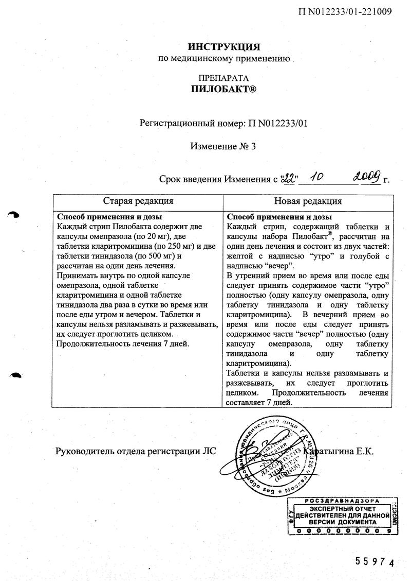 Описание лекарственного средства Пилобакт® не предназначено для назначения лечения без участия врача.