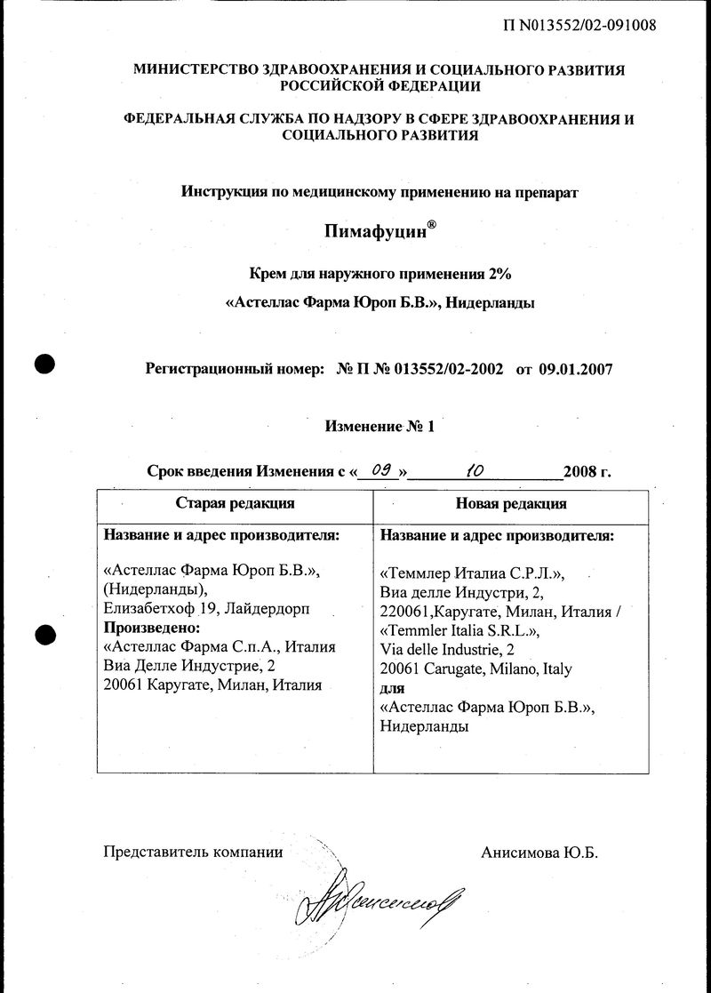 Описание лекарственного средства Пимафуцин® не предназначено для назначения лечения без участия врача.